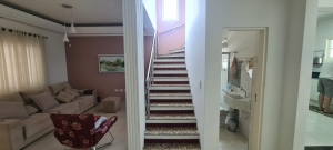 Andar superior com 3 dormitórios sendo uma suíte com hidro - closet com armários - banheiro social + 2 dormitórios com armários - escada com corrimão de aço inox.