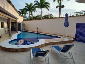 Casa com 4 dormitórios, sendo 3 suítes, cozinha, área de serviço interna. Sala de jantar e estar, área de churrasqueira, sauna, hidromassagem, salão, salinha para lazer, banheiro de empregada, banheiro para piscina.