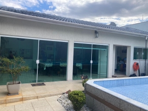 Há ainda 2 banheiros adicionais, lavanderia ampla com armários, varanda e piscina de 25 mil litros, medindo 7,5 x 5 metros, com hidromassagem integrada.