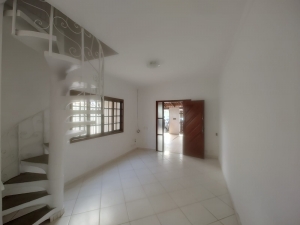 No pavimento térreo, conta com varanda coberta, garagem para até 2 carros de pequeno porte, sala ampla integrada à cozinha, 1 dormitório, banheiro completo, lavanderia externa coberta e fechada, além de corredor lateral com pequeno quintal privativo nos fundos.
